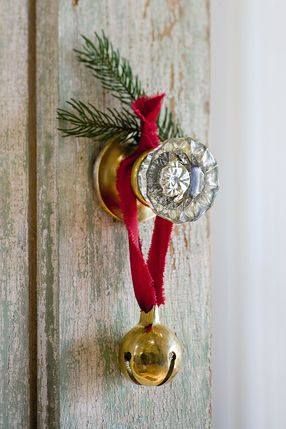 Altrimenti se l’utilizzo dei dischi non vi affascina per decorare le maniglie potete utillizzare dei campanellini, i quali possono risultare una perfetta alternativa al classico campanello nel periodo natalizio.