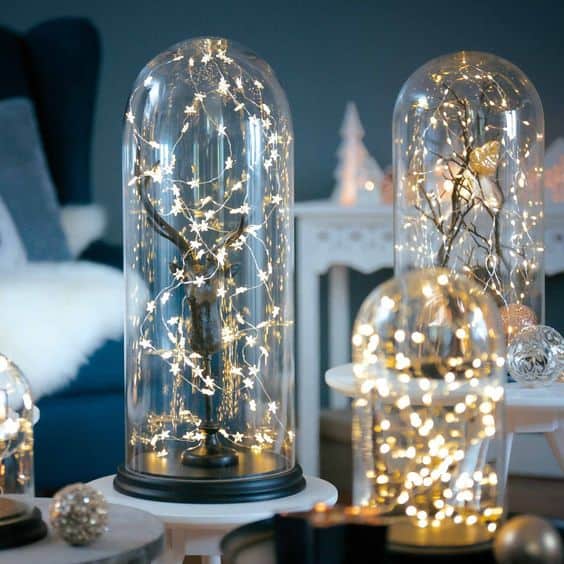Avete in casa delle bottiglie o dei contenitori di vetro vuoti? Potete riutilizzarli come decorazioni natalizie. Ponendo al loro interno le luci colorate solitamente utilizzate per l’albero di natale, in tal modo creerete la giusta atmosfera natalizia, la vostra casa si riempirà di colori ed avvertirete il classico calore del Natale in arrivo.