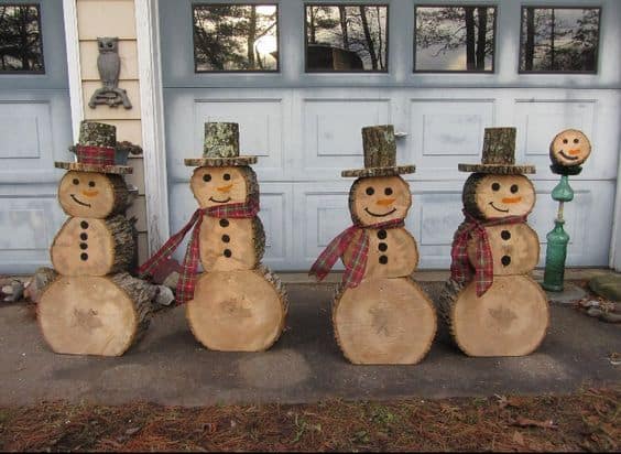 Per chi non dispone di questo materiale ma desidera il proprio Frosty, un’altra idea è dietro l’angolo. Di semplice realizzazione, economica e decisamente originale: servono solo dei pezzi di tronco d’albero e delle tempere. Il processo di realizzazione e il medesimo.