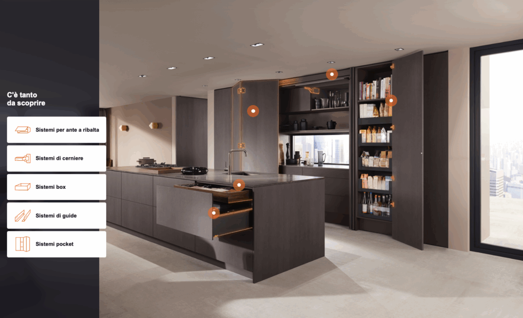 - Ammortizzatori integrati per trasformare ogni anta in un’apertura fluida