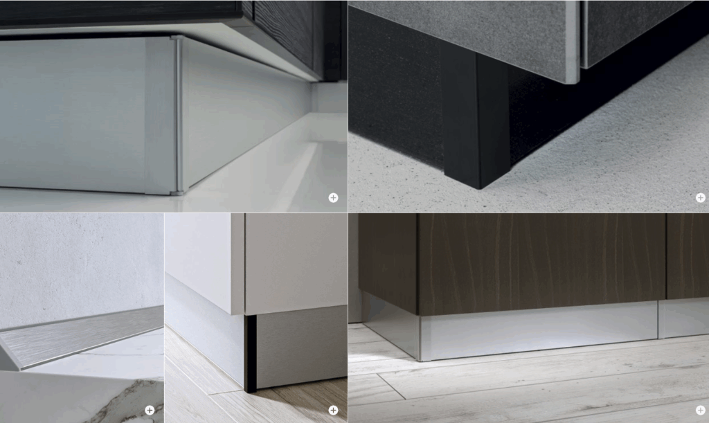 Zoccoli per cucina in alluminio. Zoccoli di diverse dimensioni colore Argento e Allumino Millerighe. Piedini, graffette, binari, gambe e zoccoli : accessori per mobili e cucina.